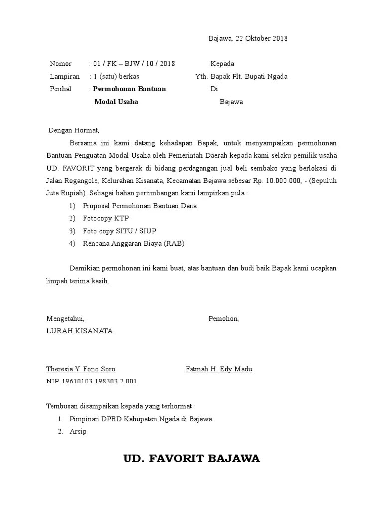 Demikianlah permohonan ini saya sampaikan ke hadapan bapak, semoga terkabul hendaknya dan terimakasih atas segala bantuan. Contoh surat permohonan modal usaha. Contoh proposal permohonan bantuan dana usaha dari pemerintah usaha kelompok atau pribadi .